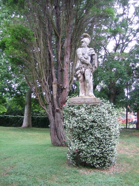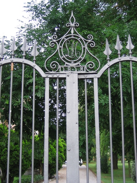 Nel cancello in ferro battuto prospicente la villa troviamo le iniziali L.M. 1818, che si riferiscono a Luigi Mattei (padre di Cesare).