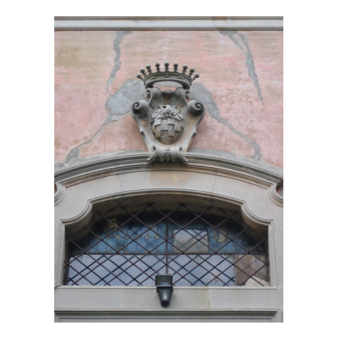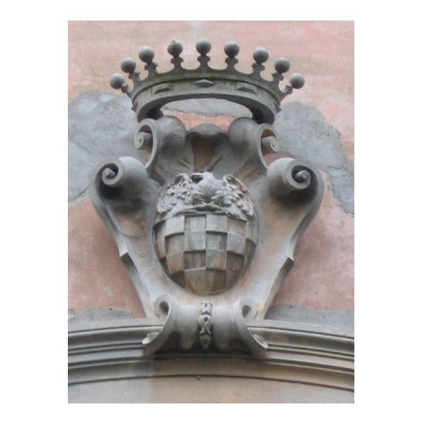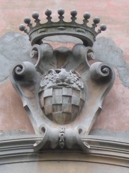 Sopra all'ingresso principale campeggia maestoso ed ancora bellissimo lo stemma araldico della casata Mattei in tre dimensioni con sopra la corona nobiliare con 9 palle (massimo grado di nobilità). L'ingresso apre sulla un meraviglioso salone interno che denota la pianta a croce che caratterizza la costruzione.