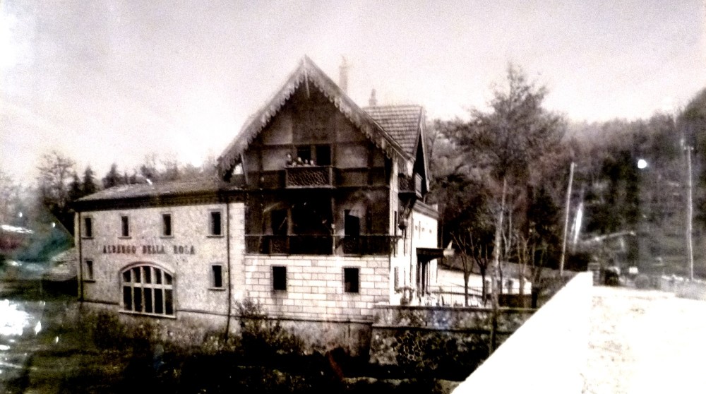 Alla testata destra del ponte sul fiume Reno fu costruito l’albergo della Rosa gestita da madame Schmid, moglie o sorella del conte omonimo, per i malati che venivano a Riola per essere sottoposti alle cure del Mattei. L’albergo era un’elegante costruzione in forma di chalet svizzero che si elevava di tre piani ed aveva all’esterno un piccolo piazzale recinto da un lato dal muro spalla del ponte di Riola, dall’altro dal muro d’ala del ponte stesso ed infine una barriera di ferro con cancelletto chiudeva l’ingresso. Dal