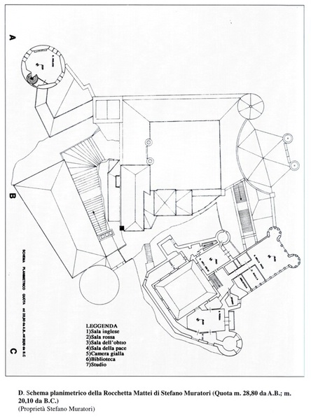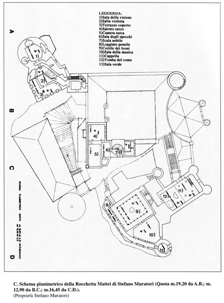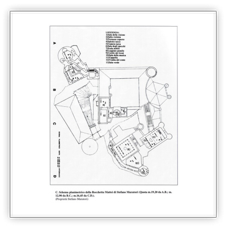 Di seguito una non recentissima planimetria (proprietà di Stefano Muratori) che ritrae buona parte del castello (non tutte le stanze sono rappresentate, solo quelle che facevano parte dell'itinerario turistico quando era aperto al pubblico).